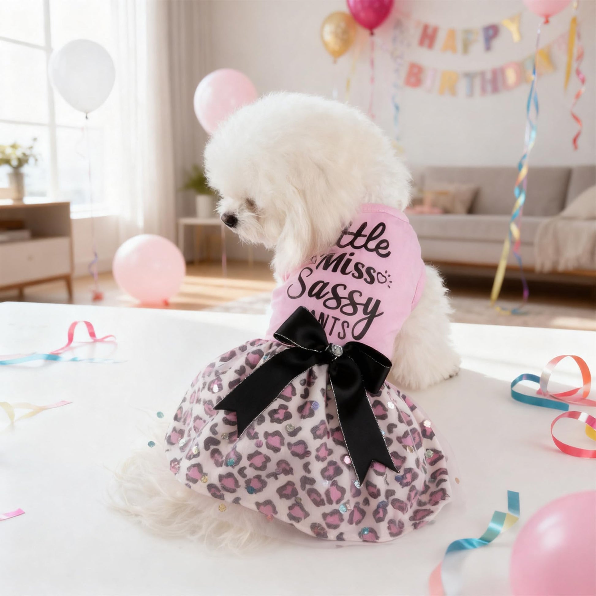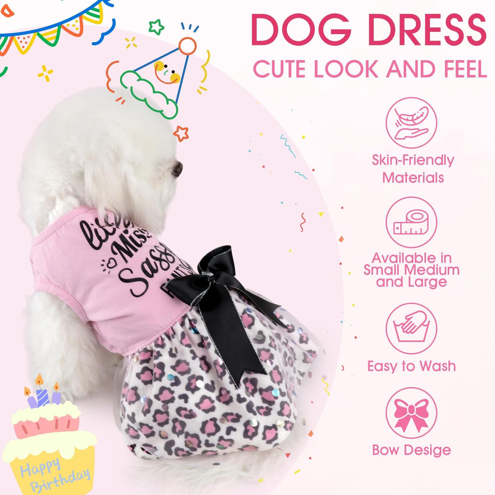 Dog Christmas Outfit - Merry Woofmas Dog Dress with Bowknot Tulle for Small & Medium Dogs